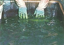 D Cの水槽にAの原液2gを濾過しながら入れて染浴を作る。