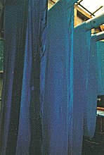 空気酸化を行うため、染浴から直接棹に干し揚げ、棹の跡が出ないように絶えず裂を動かして
